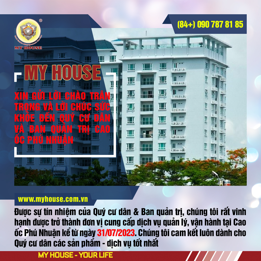 Ngày 31/07/2023 - Công ty cổ phần dịch vụ quản lý bất động sản MY HOUSE - MY HOUSE rất vui mừng thông báo rằng: Chúng tôi đã ký kết hợp đồng dịch vụ quản lý và vận hành CAO ỐC PHÚ NHUẬN tại 20 Hoàng Minh Giám, Phường 9, Quận Phú Nhuận, TP. HCM.