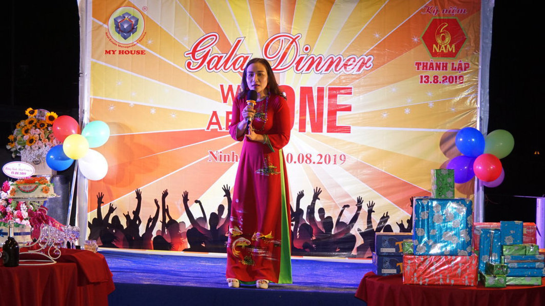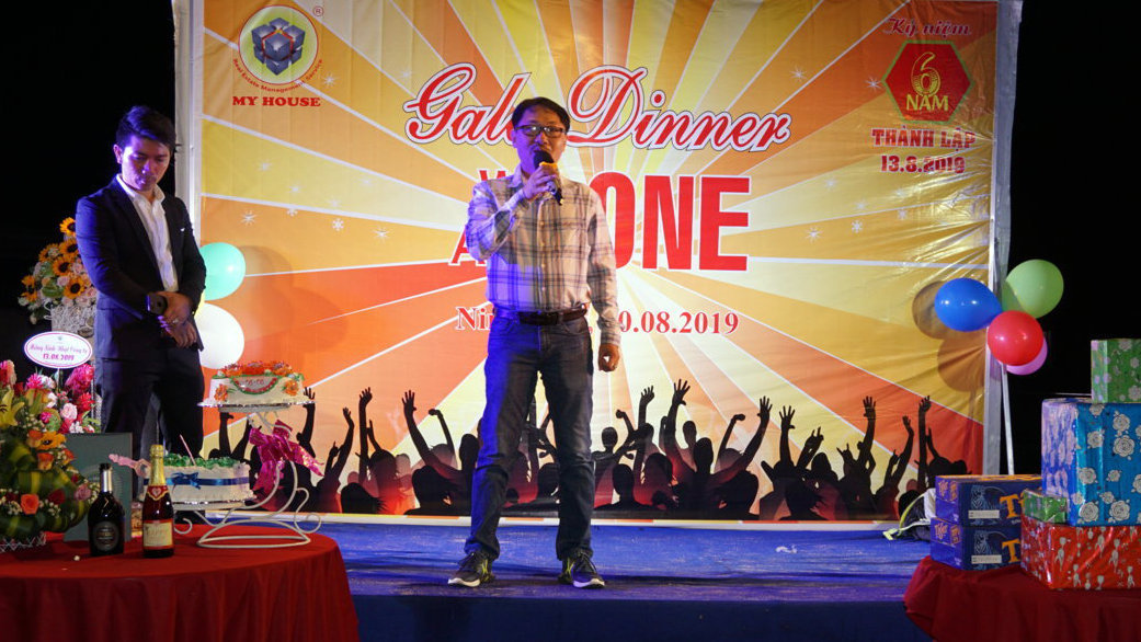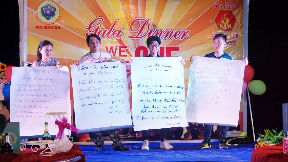 Càng về tối cuộc vui càng sôi động, náo nhiệt hơn tại đêm Gala Dinner ngoài trời. Đêm Gala không chỉ kỷ niệm 6 năm thành lập MY HOUSE mà còn là dịp mừng các thành viên Đại Gia đình có ngày sinh nhật trong tháng 8.