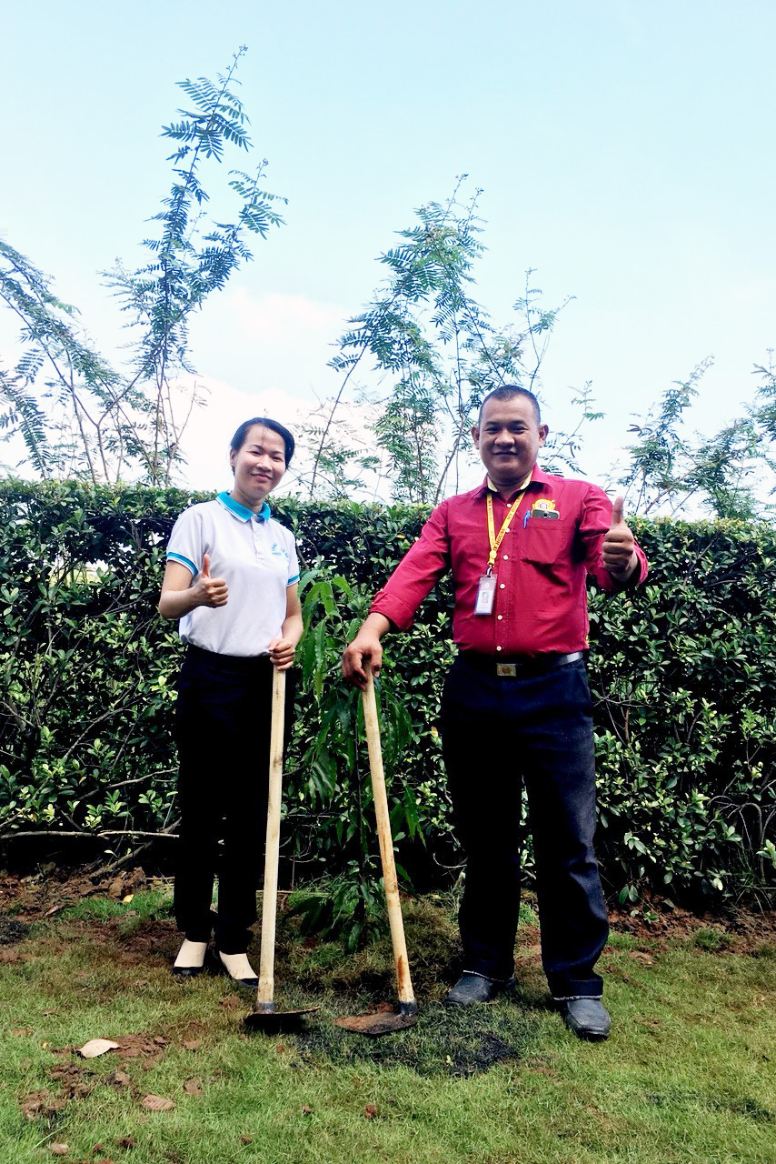 Các nhân viên Ban Quản lý cùng với cư dân đã trồng cây xanh dọc theo hàng rào không chỉ tạo thêm mảng xanh bóng mát cho sân chơi trẻ em mà còn tác dụng lọc khói bụi. tiếng ồn trong không khí tăng cường sức khỏe cho cư dân.