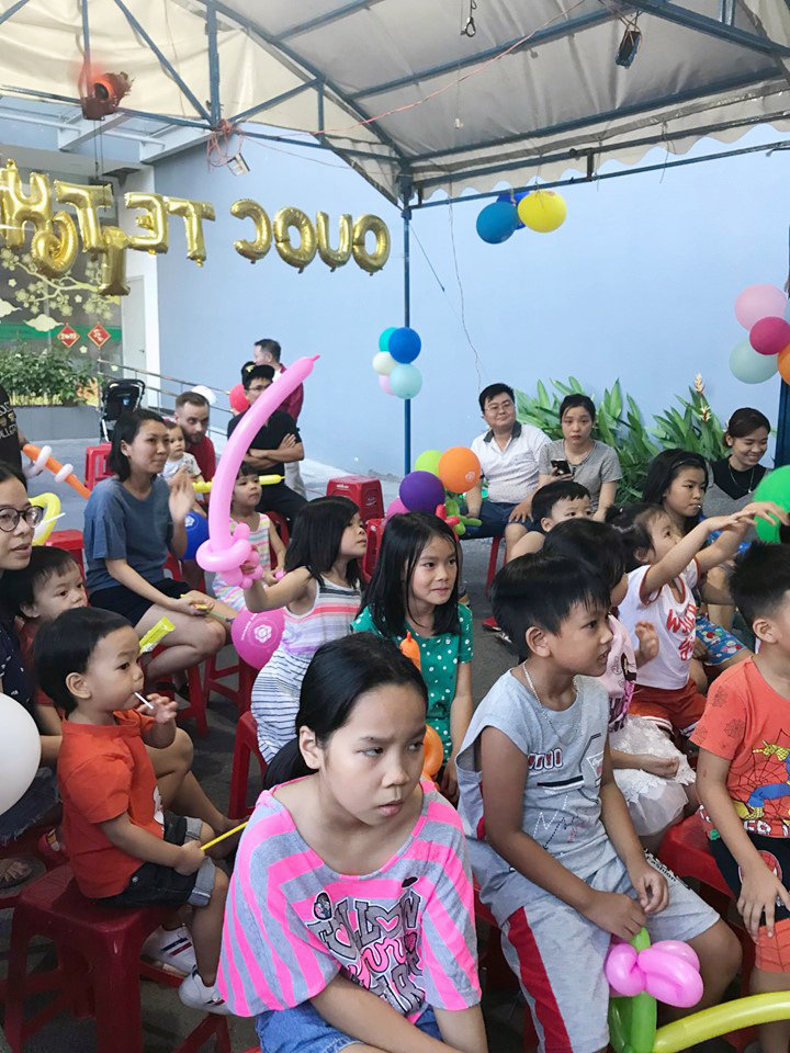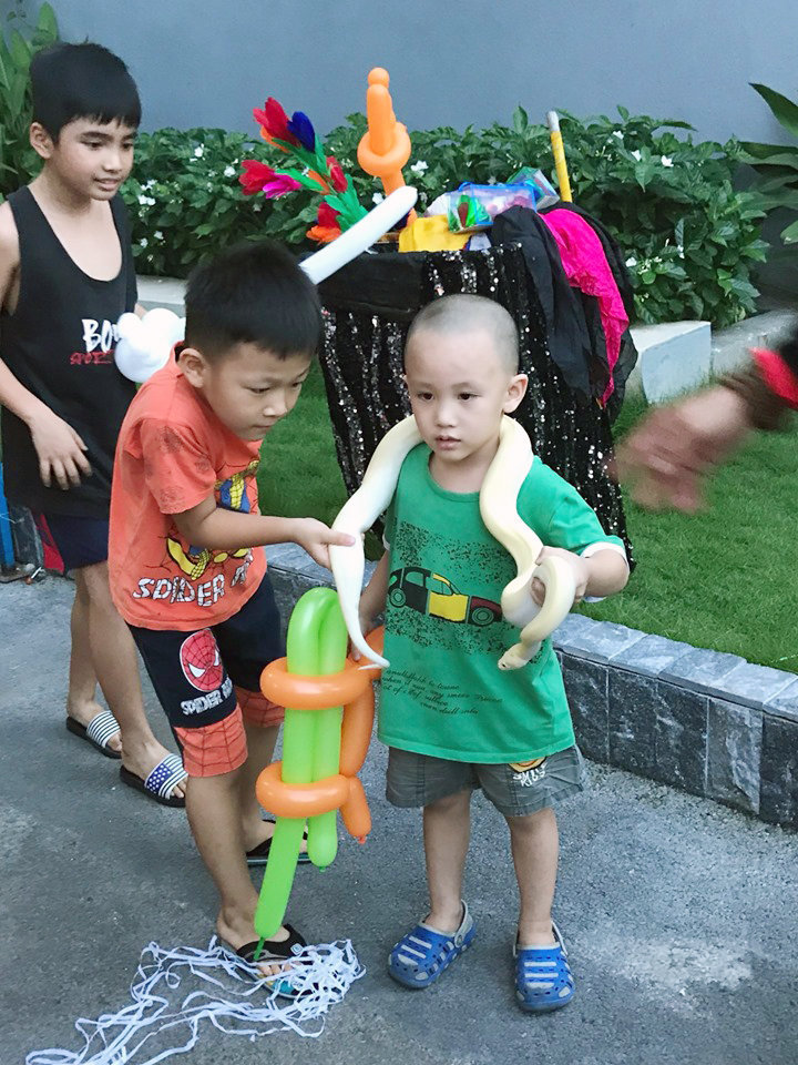 Không chỉ nhận được các bong bóng tạo hình cùng bánh trái ngon lành, các bé còn được thưởng thức nhiều màn ảo thuật đặc sắc và chương trình văn nghệ thật hấp dẫn.