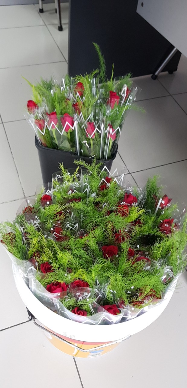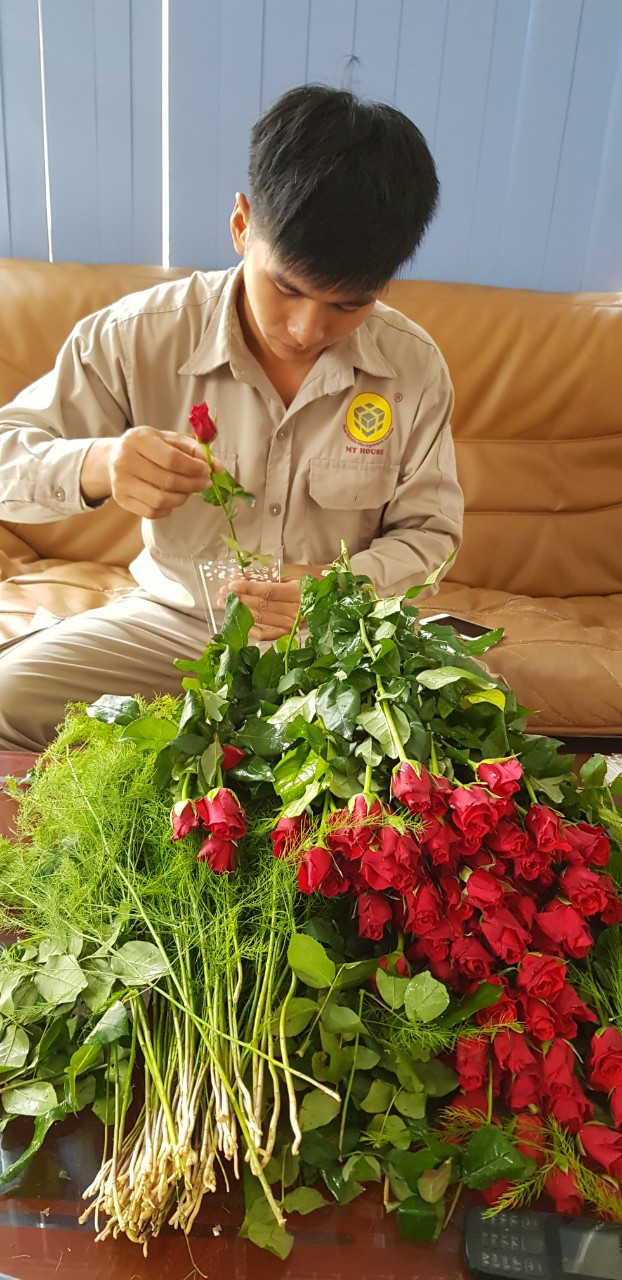 Chuẩn bị hoa để tặng cư dân đến đóng phí
