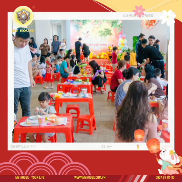 Và không thể thiếu nhất trong ngày Tết Trung thu truyền thống đó chính là tiếng chiêng trống vang lừng của đoàn múa lân khuấy động bầu không khí của lễ hội cùng với sự có mặt của chú Cuội, chị Hằng, thỏ ngọc và mâm cỗ trăng rằm. Buổi tiệc kết thúc với hoạt động phá cỗ đêm trăng đã được ban quản lý tòa nhà chuẩn bị rất tỉ mỉ.