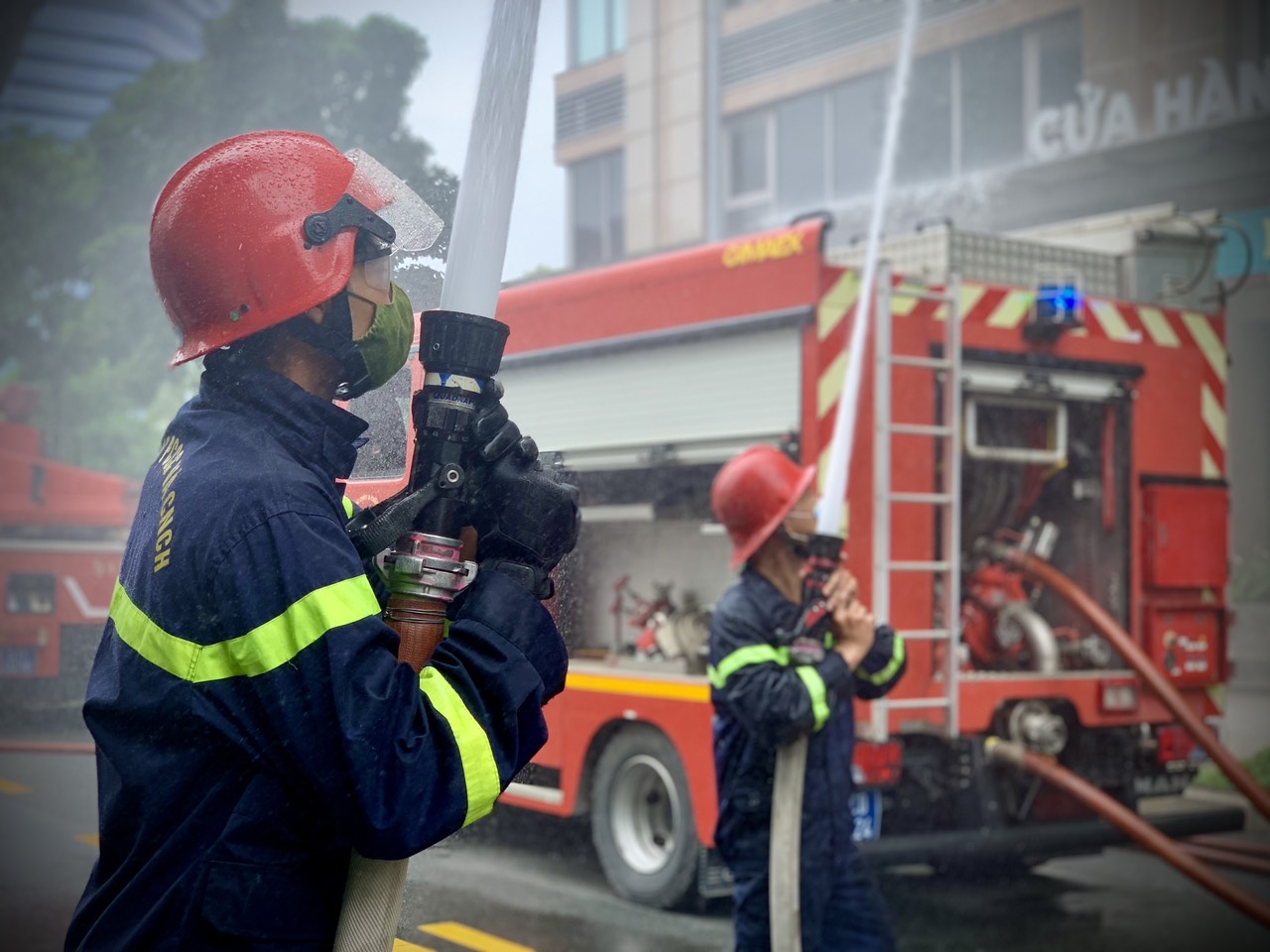 Các hoạt động giả định được tiến hành giống như một vụ cháy xảy ra tại chung cư, do vậy, trong quá trình diễn tập có triển khai phun nước chữa cháy, cứu hộ người trên cao bằng xe thang tại toà nhà. Trước đó, Ban Quản lý tòa nhà đã thông báo để người dân đóng kín cửa kính, thu dọn quần áo tại ban công/logia, đảm bảo an toàn, không ảnh hưởng đến đời sống, sinh hoạt bình thường của cư dân.