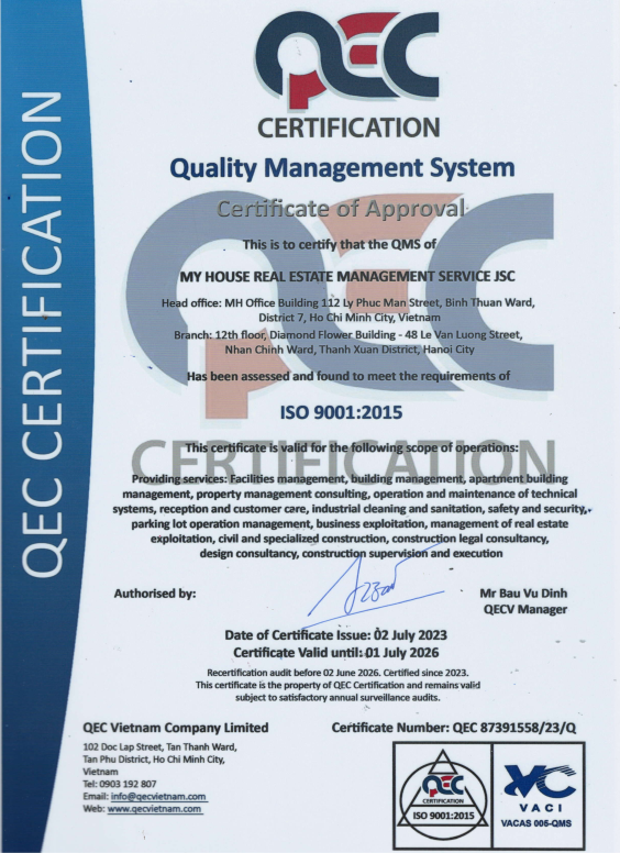 ĐỦ ĐIỀU KIỆN QUẢN LÝ VẬN HÀNH NHÀ CHUNG CƯ