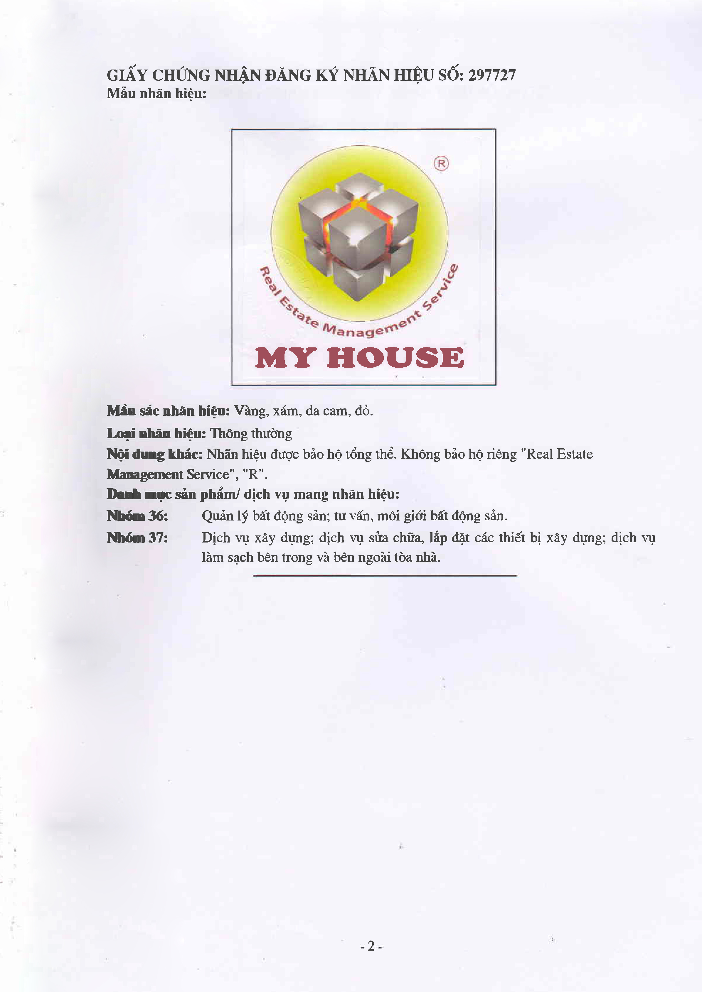 Đầu tháng 04/2018, Công ty CP Dịch vụ Quản lý Bất động sản MY HOUSE (MY HOUSE) - là đơn vị quản lý chung cư, được Cục Sở hữu trí tuệ (Bộ Khoa học và Công nghệ) công nhận logo MY HOUSE là nhãn hiệu độc quyền.