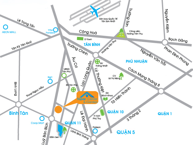 Từ Topaz Garden chỉ mất chưa đến 1km sở hữu hàng loạt các tiện ích, dịch vụ hoàn hảo, sầm uất như: Hệ thống thiêu thị Coop Mart, Siêu thị Big C, Chợ Hiệp Tân, nhà thiều nhi quận Tân Bình, UBND quận Tân Phú và trung tâm văn hóa quận Tân Phú. Cư dân Topaz Garden còn được hưởng thụ các tiện ích như khu du lịch Đầm Sen, trường cao đẳng CNTT, trường Việt Mỹ, trường mầm non quốc tế ANIS, trung tâm thể thao nhà thi đấu Lê Đại Hành, chợ Bình Tân, ĐH Bách Khoa...