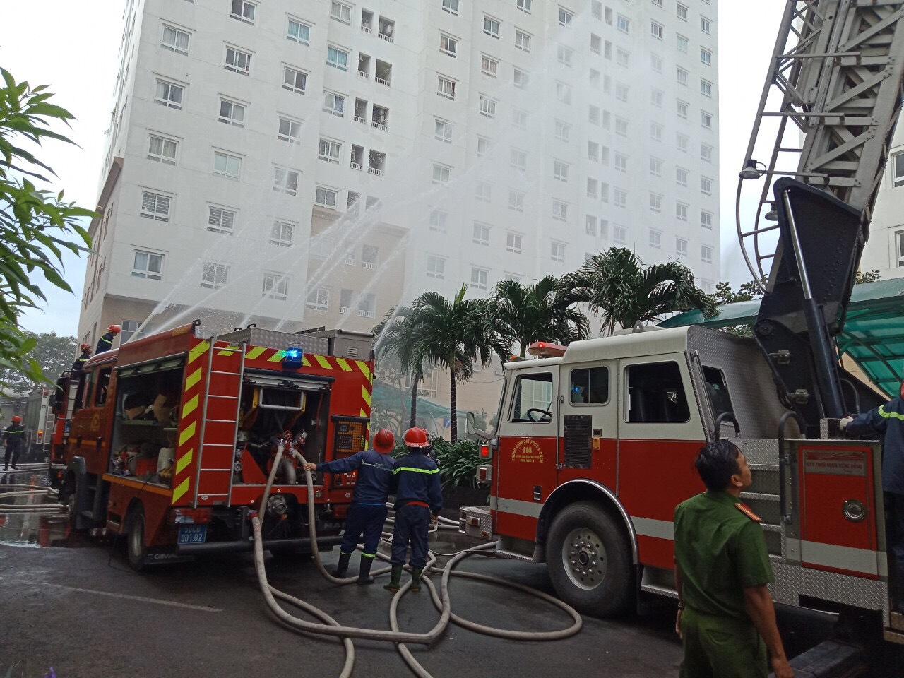 Đơn vị chữa cháy quận Tân Phú và thành phố HCM đã huy động lực lượng chữa cháy chuyên nghiệp với 5 xe chữa cháy chuyên dụng (có xe thang chữa cháy nhà cao tầng) cùng 1 xe cứu thương của Bệnh viện quận Tân Phú đã có mặt tại chung cư Topaz Garden - Topaz Center trong vòng 5-10 phút khi phát hiện có cháy trên tầng cao.