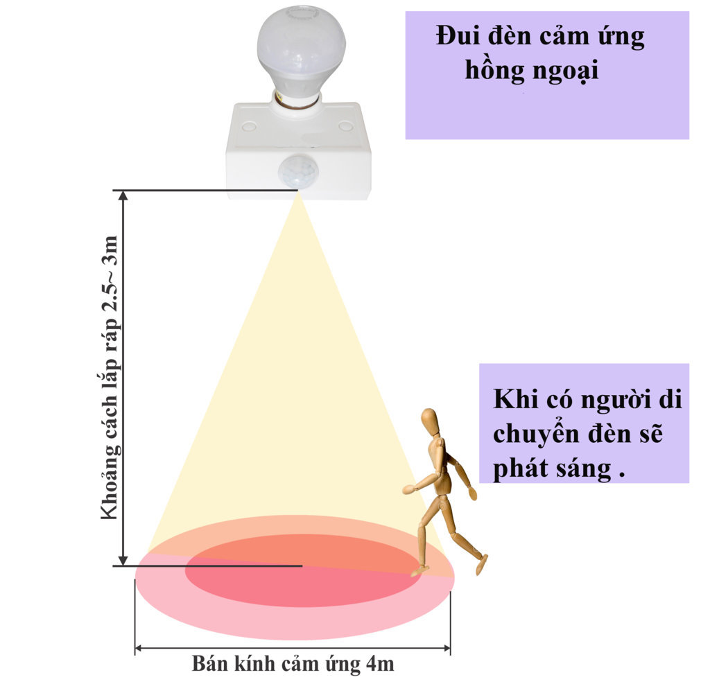 - Sử dụng đui đèn cảm ứng cho khu vực sử dụng chung (cầu thang, hành lang, WC,...) tại tư gia: đèn tự động tắt sau 20 giây (đến 5 phút) nếu không có người trong khu vực đèn chiếu sáng để tránh trường hợp quên tắt đèn sau khi sử dụng.