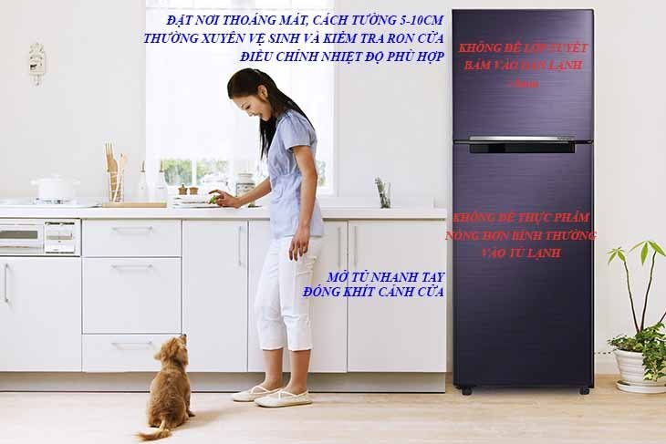 - Đặt tủ lạnh nơi thoáng mát nên cách tường 5-10 cm, tránh ánh nắng hoặc gần các nguồn nhiệt: bếp, nồi cơm điện,....