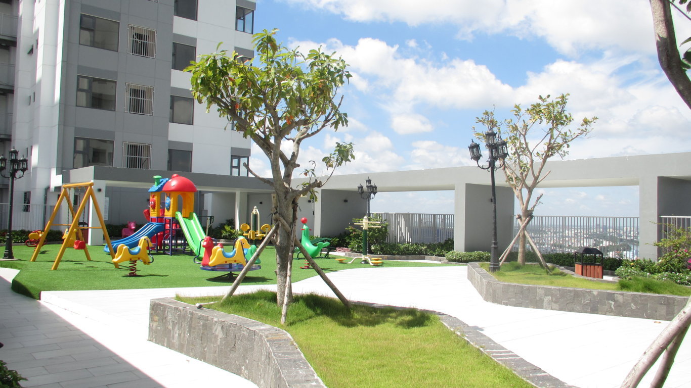 Khu sân vườn Paradise tầng 21 - nơi tập thể dục và thư giãn dành riêng cho cư dân vào mỗi sáng và sau giờ làm việc