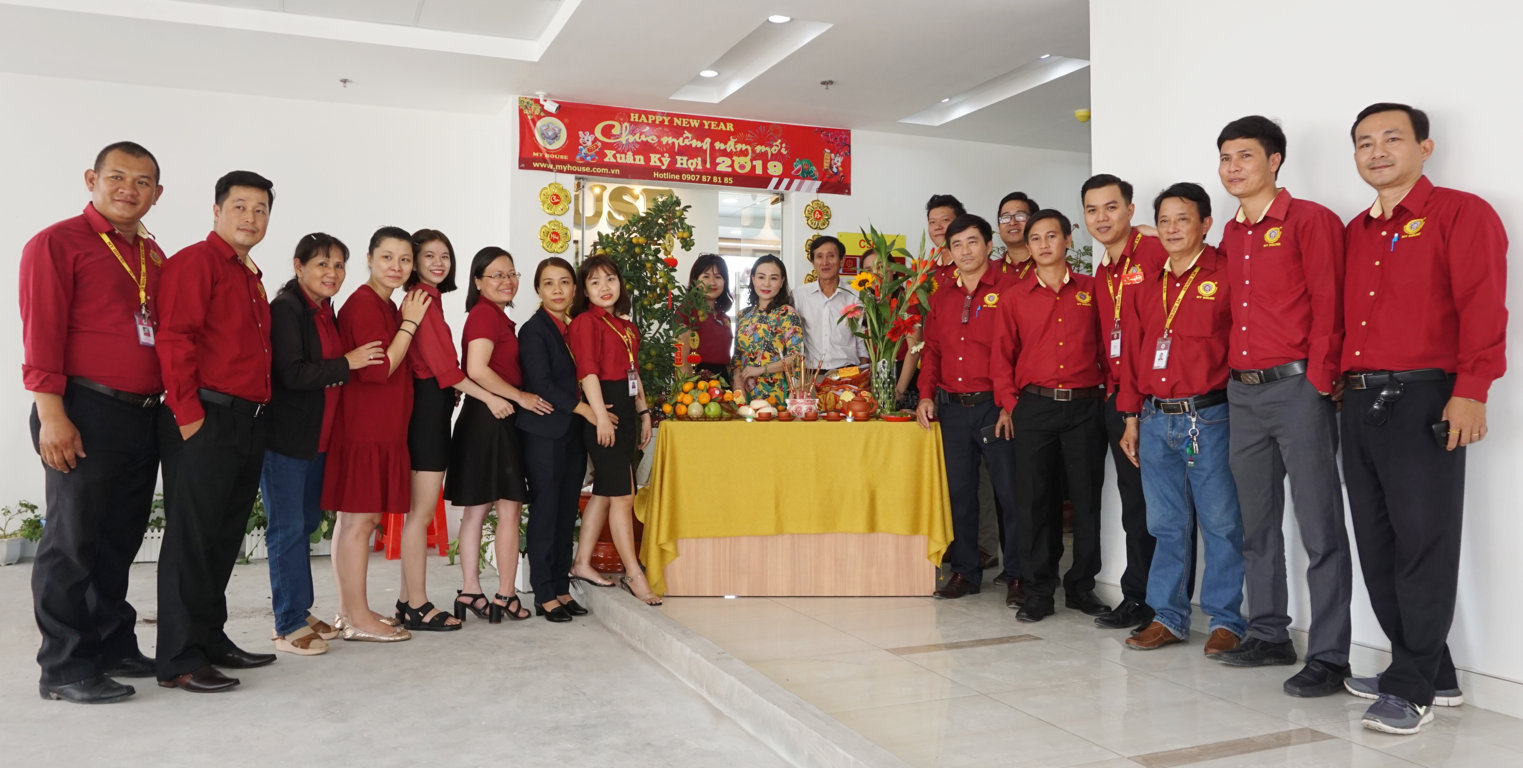 Lãnh đạo MY HOUSE chụp hình lưu niệm cùng cán bộ nhân viên đầu năm mới Kỷ Hợi