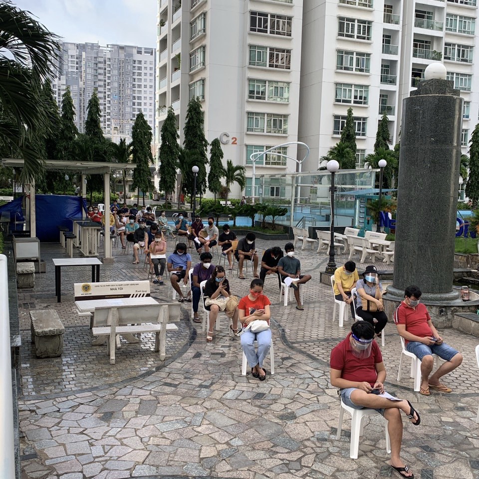Nhiều ngày qua, dịch bệnh càng lúc càng phức tạp, mặc dừ BQL chung cư hết sức nghiêm ngặt tuân thủ 5K, cư dân thì vẫn luôn ở trong nhà, nhưng vẫn không tránh khỏi nỗi lo lắng nhiễm bệnh. Khi mọi người nghe tin toàn chung cư sẽ được tiêm vaccine, ai nấy cũng đều rất vui mừng và phấn khởi.