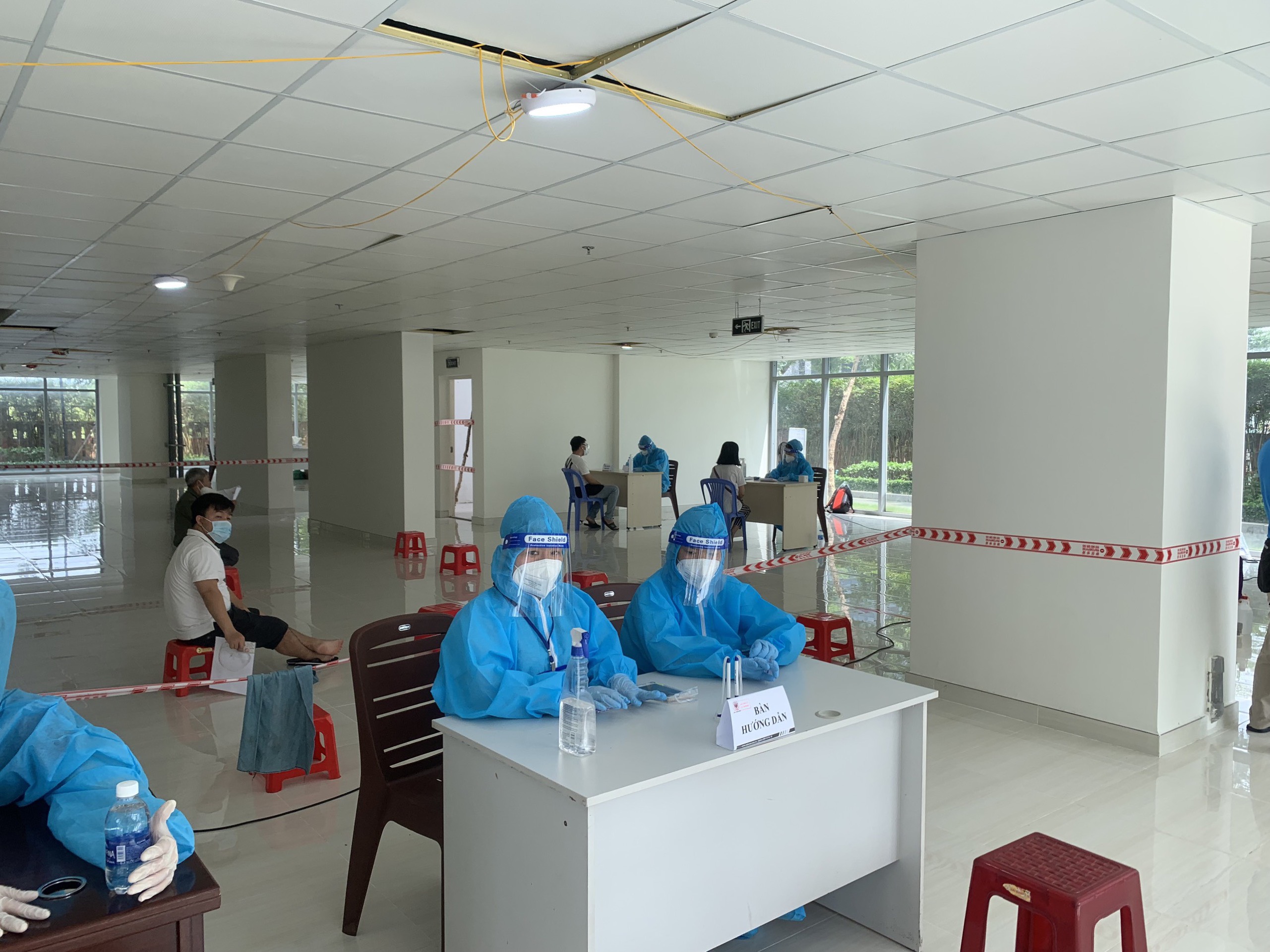 Quy trình tiêm phòng được bố trí một chiều từ bàn ghi thông tin cho đến khu vực nghỉ ngơi sau tiêm.