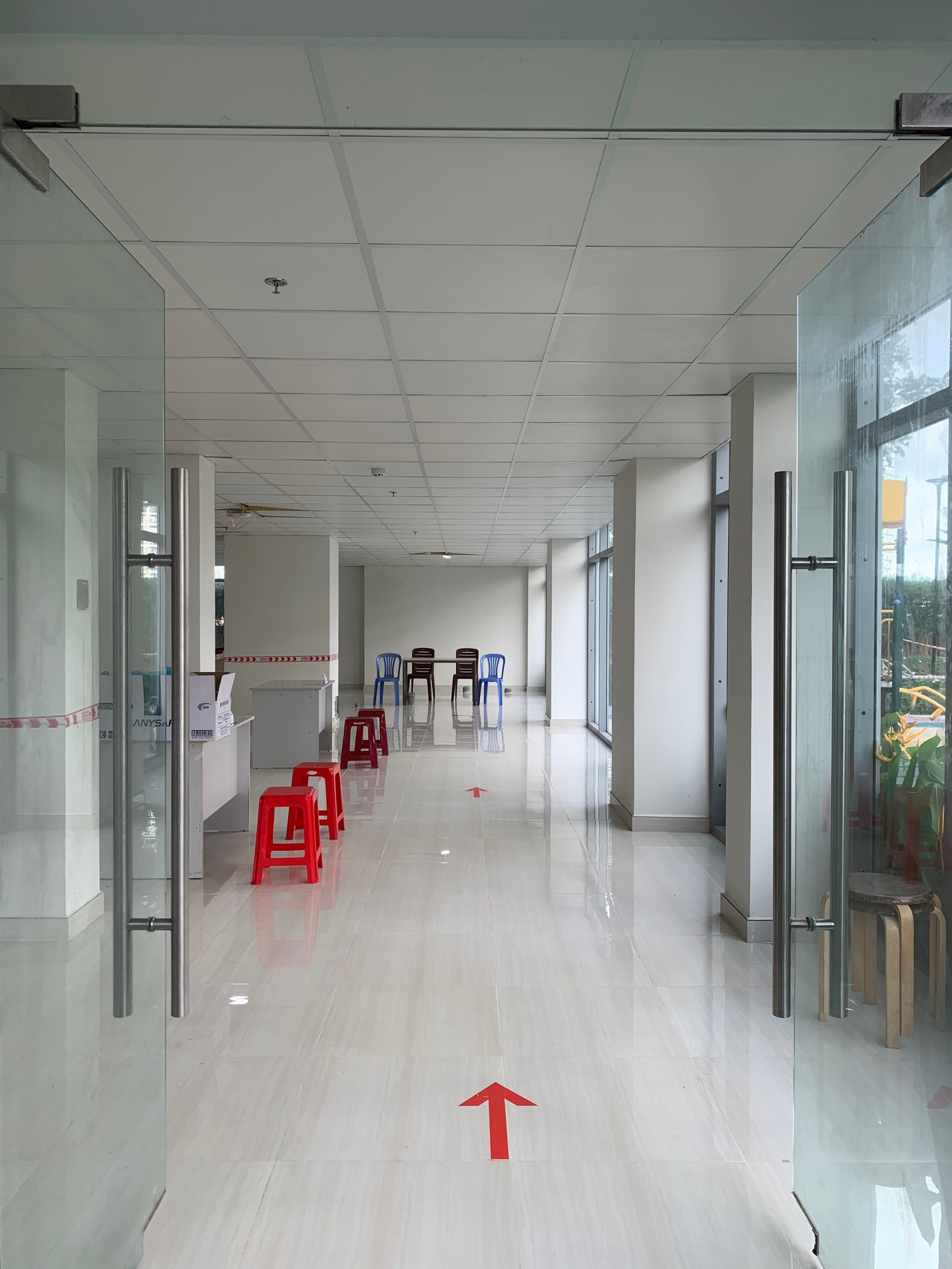 Các ghế chờ được sắp xếp sẵn, đảm bảo khoảng cách trên 2m, tuân thủ đúng và nghiêm túc 5K.